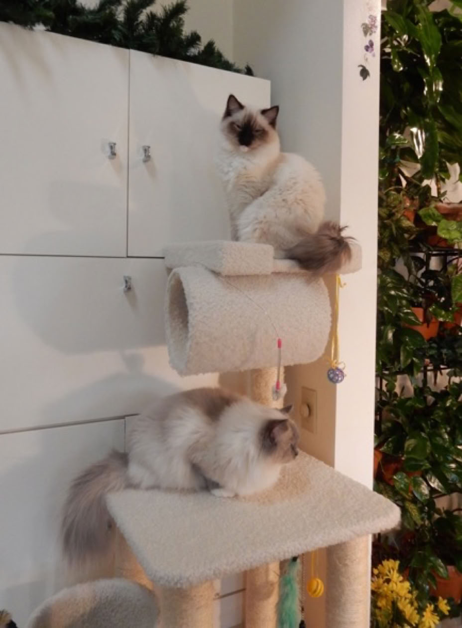 “Canyon” (at almost 6 months) and “Sierra” are relaxing on one of their cat trees.