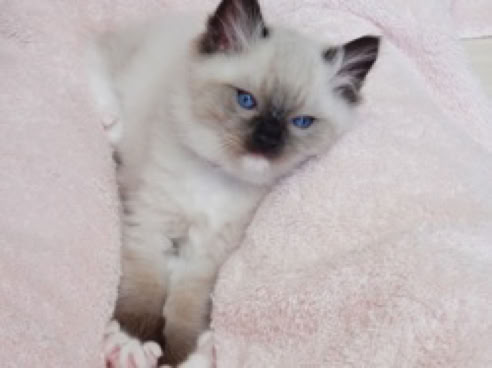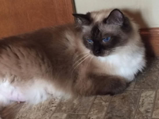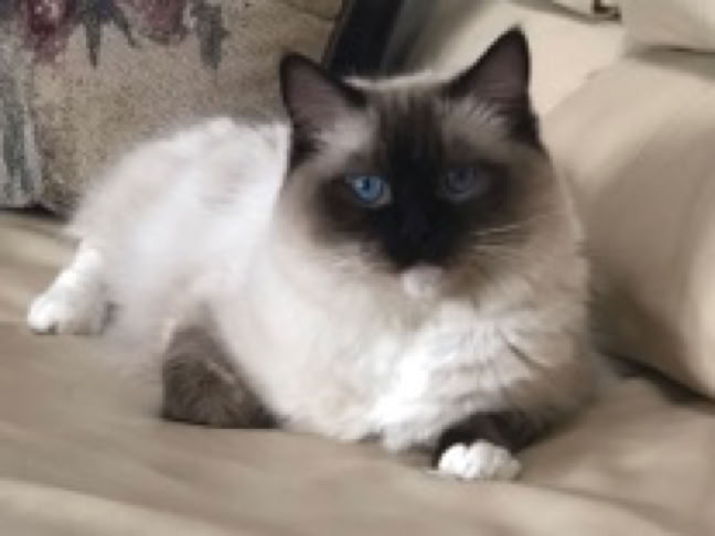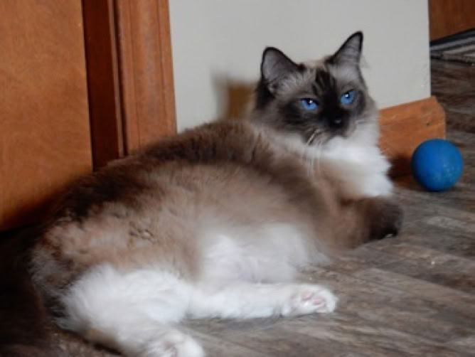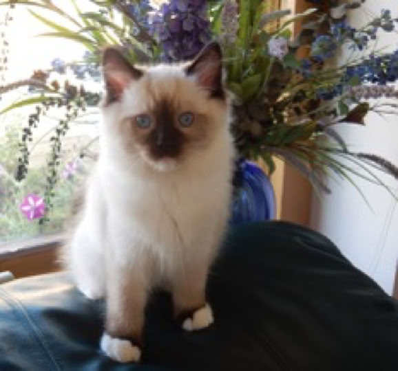 It’s a challenge to capture how blue our Ragdolls’ eyes really are. Finally, I was able to snap this photo of Canyon’s heart-melting, dark blue eyes…which he passes on to his offspring.