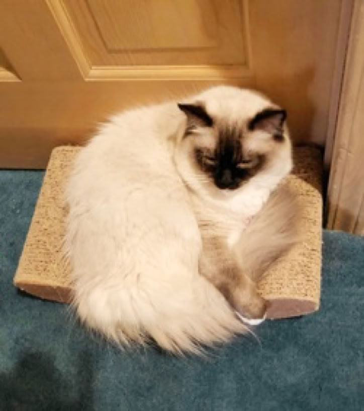 “Sierra” and “Canyon” are enjoying one of their favorite sleeping places—atop the living room couch. “Canyon,” is pictures at five months.