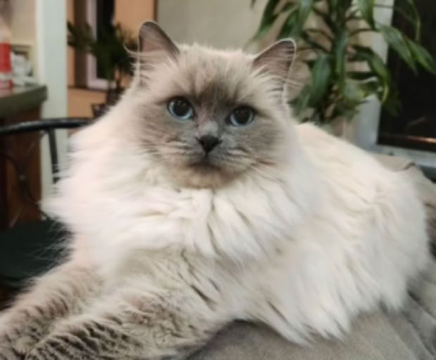 All four Ragdolls are enjoying time in our great room. “Dakota” is having a blast climbing to the highest perch.