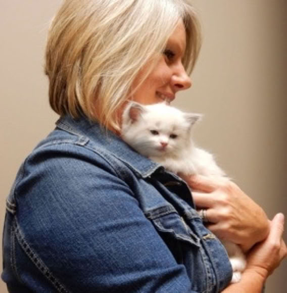 Photo on the left...while waiting to receive her first shot, Michelle (“Sierra’s” first ‘human’ mommy) lovingly held “Sierra”).
