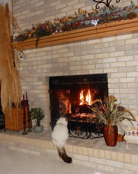 At five months of age, “Canyon” is basking in the warmth of our fireplace.
