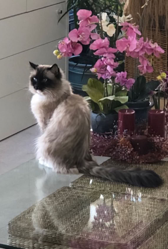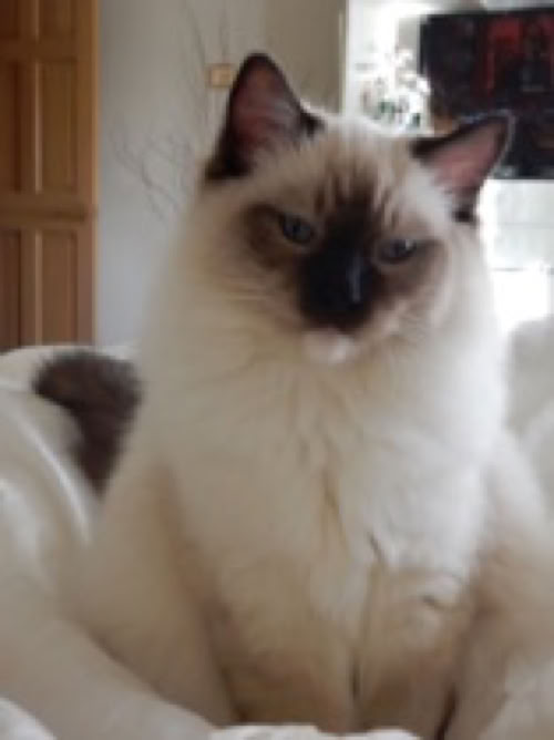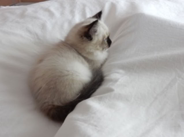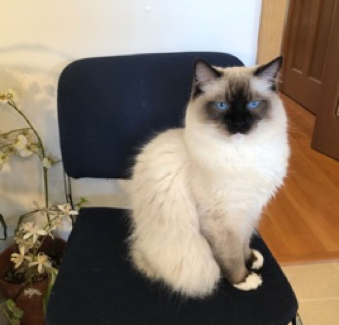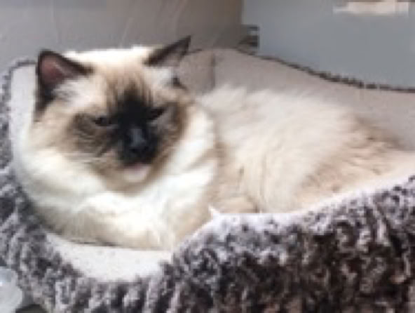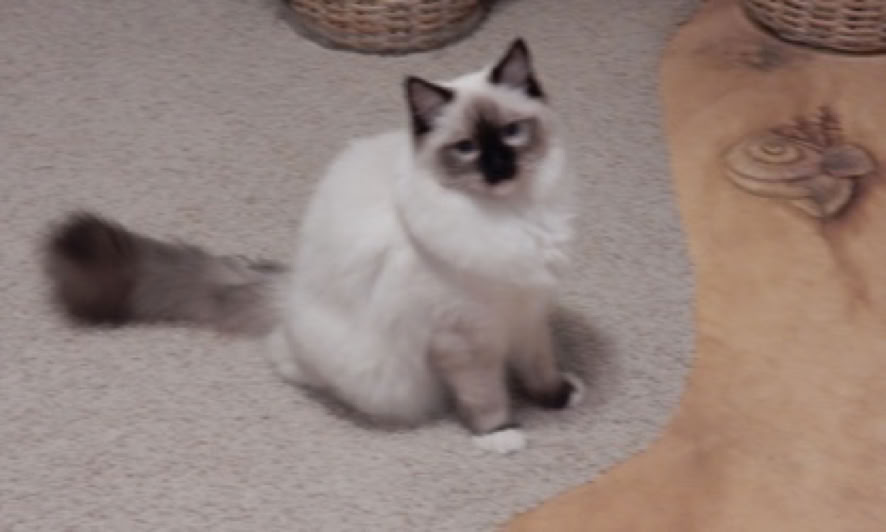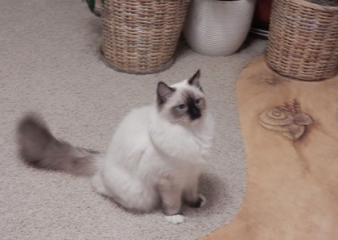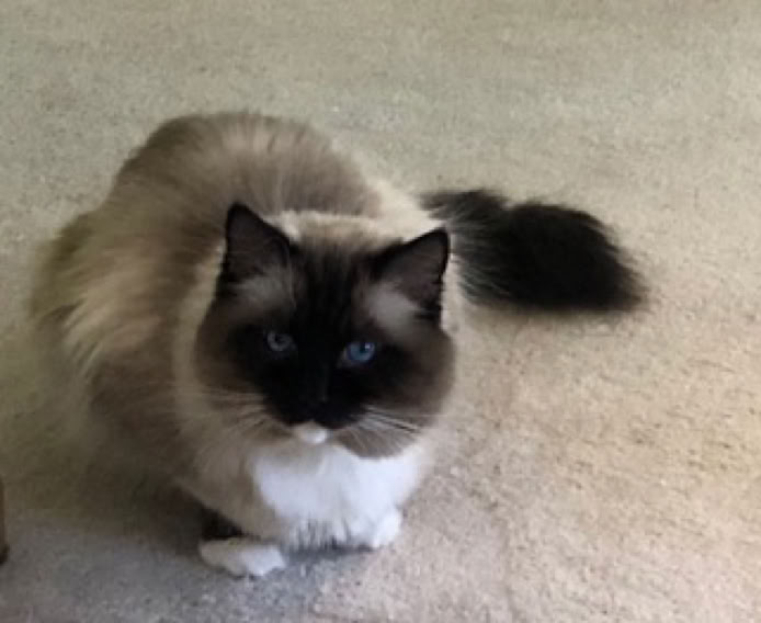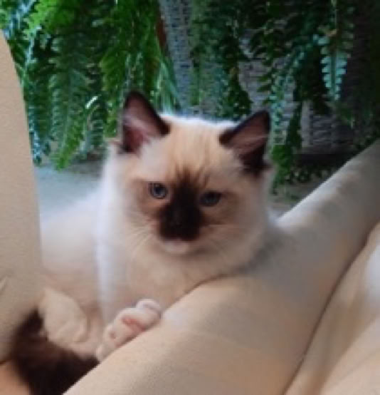 It’s a challenge to capture how blue our Ragdolls’ eyes really are. Finally, I was able to snap this photo of Canyon’s heart-melting, dark blue eyes…which he passes on to his offspring.