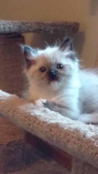 “Canyon” is shown at 5 1/2 months (December 17, 2017) with his buddy, “Sierra.” Now...really...can they both fit on this tiny shelf located on top of their cat tree???
