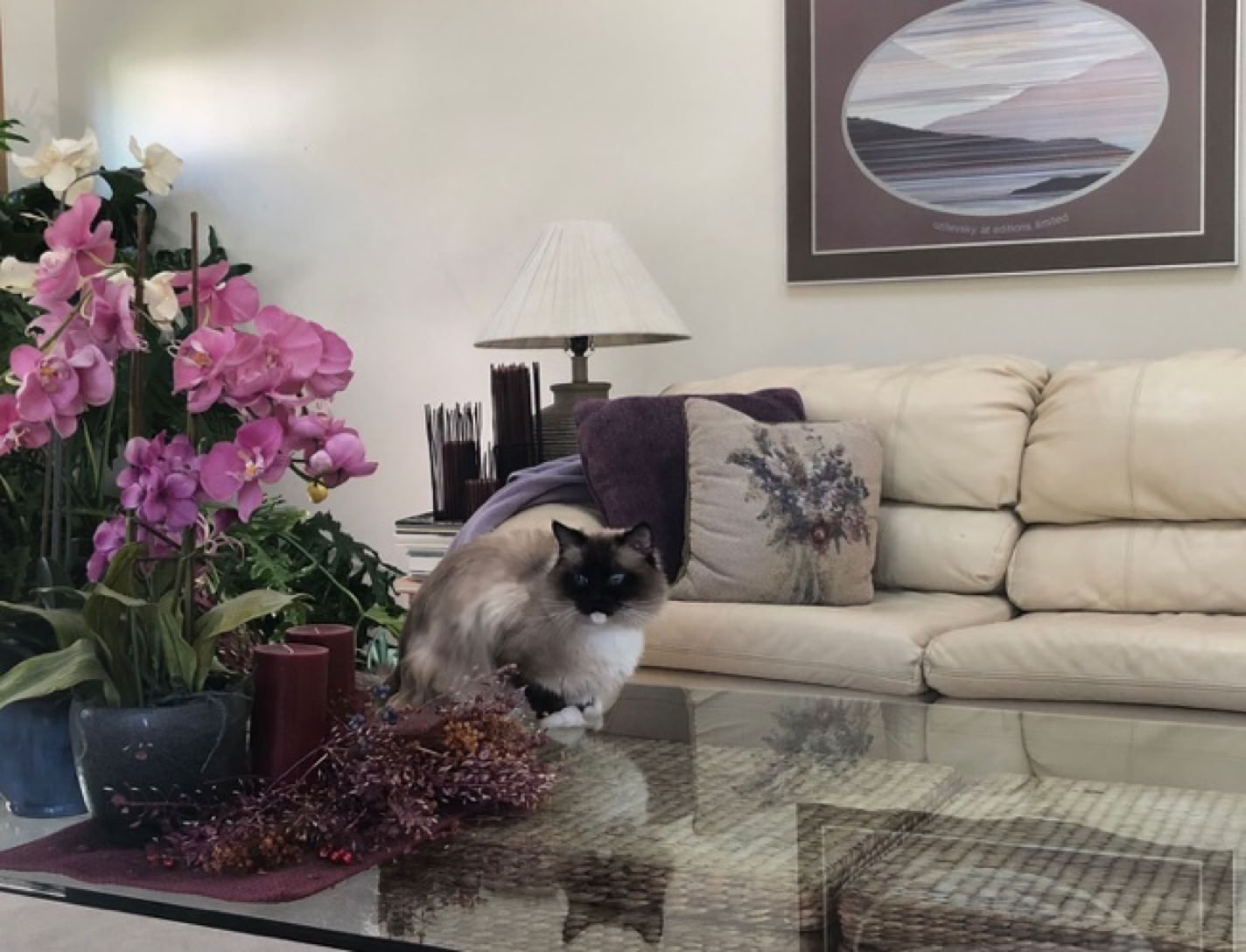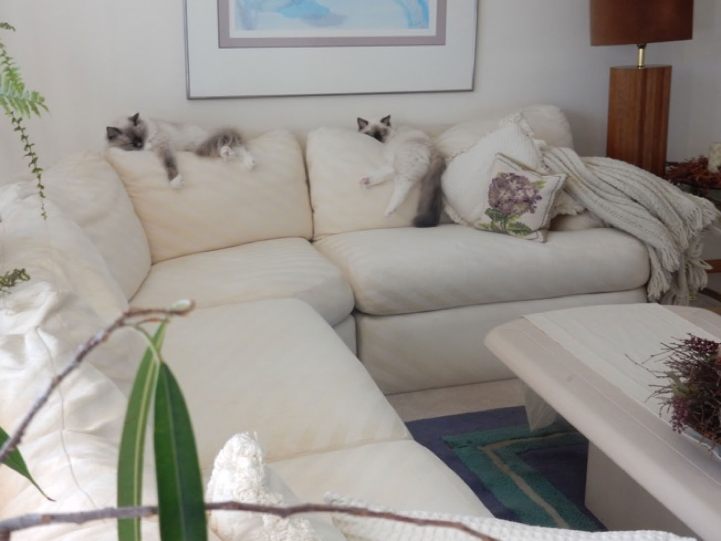 “Sierra” and “Canyon” are enjoying one of their favorite sleeping places—atop the living room couch. “Canyon,” is pictures at five months.