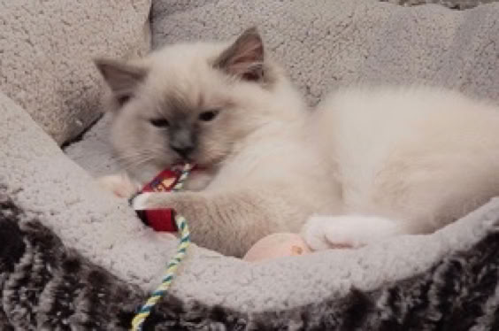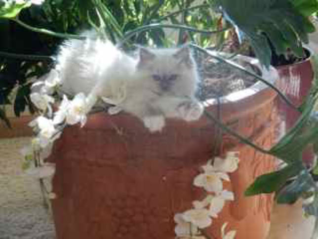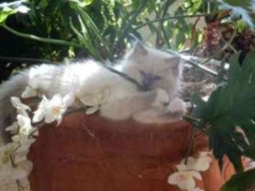 "Sierra" is pictured above at 10 weeks. These were taken right before we left on the cruise in November 2015). Frank and I had her in our home for about 3 weeks before our planned vacation was to begin. During our holiday “Sierra” went to live with Michelle and her Ragdoll cousins. She enjoyed herself immensely!