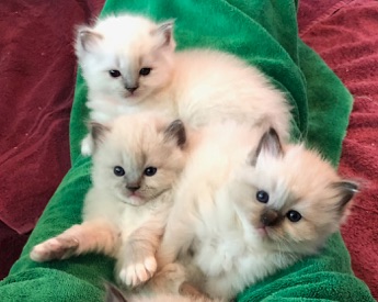 Yellow collar kitten pictured to the right of this photo—three weeks of age.