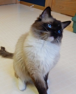 It’s a challenge to capture how blue our Ragdolls’ eyes really are. Finally, I was able to snap this photo of Canyon’s heart-melting, dark blue eyes…which he passes on to his offspring.