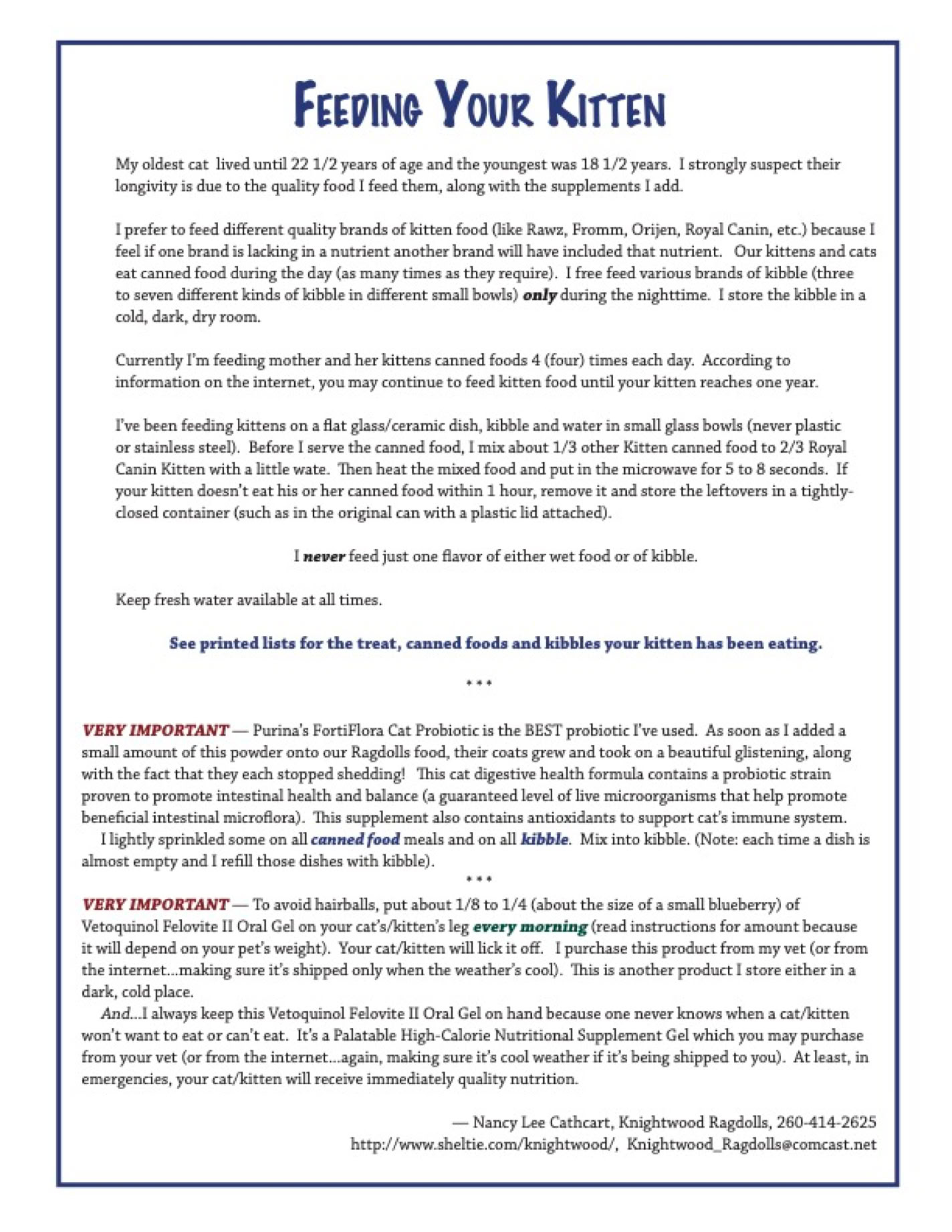 Note: ALL Fancy Feast foods are given in very small portions (¼ to ½+ tsp. per kitten) —